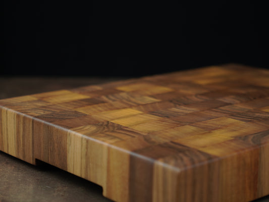 🏁 Le Damier d’Acacia – Billot de Cuisine Pro en Bois de Bout