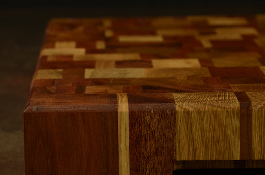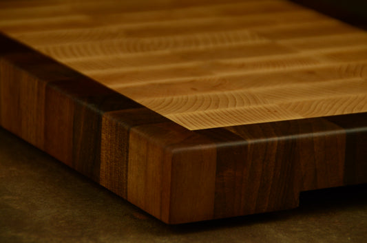 XL Hackklotz aus Walnuss und Eiche - 51x38x4cm - Hirnholz mit Saftrille, handwerkliche Qualität