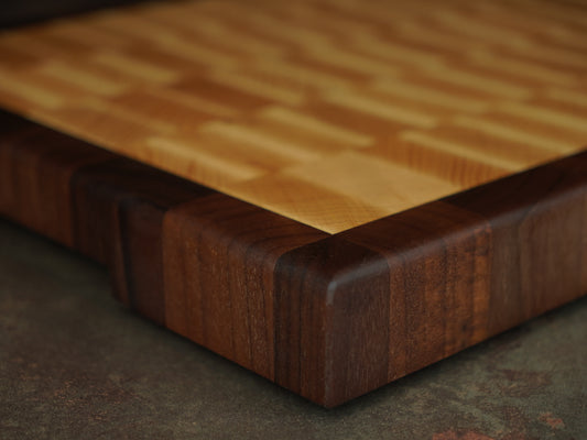XL Hirnholz-Schneidebrett - 51x35x4cm - Eichen- und Walnussdesign mit Saftrille