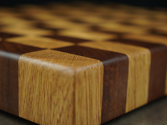 Planche à Découper 3 Essences de Bois - Chêne, Hêtre, Noyer | Planche en Bois de Bout Façon Damier | Cadeau pour Chef
