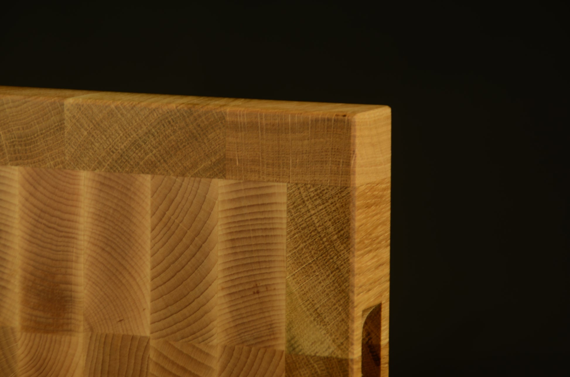Planche à découper en bois de bout 🌳 fabriquée à la main, associant la chaleur du hêtre et la noblesse du chêne.