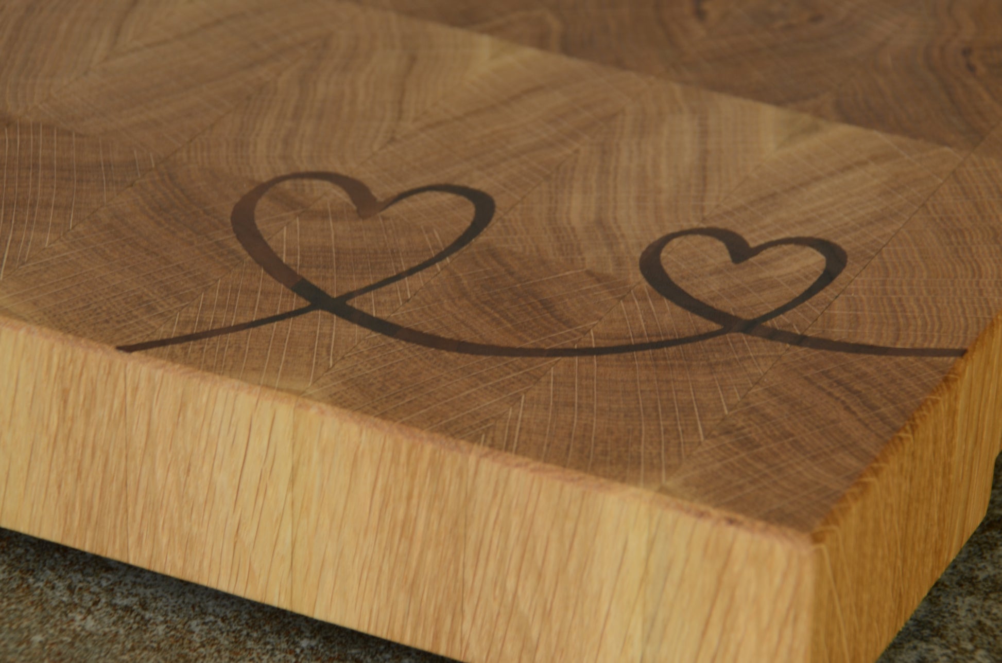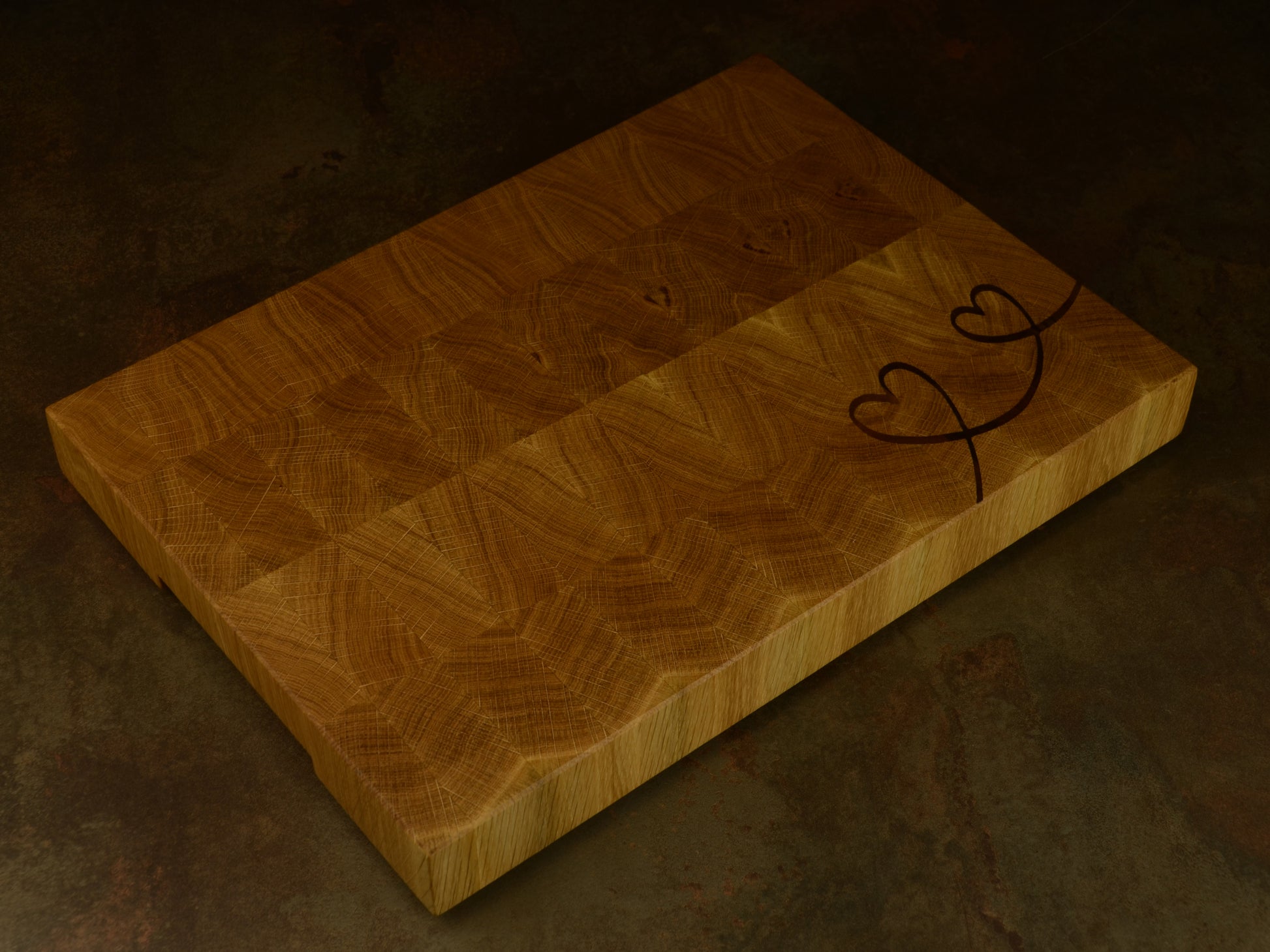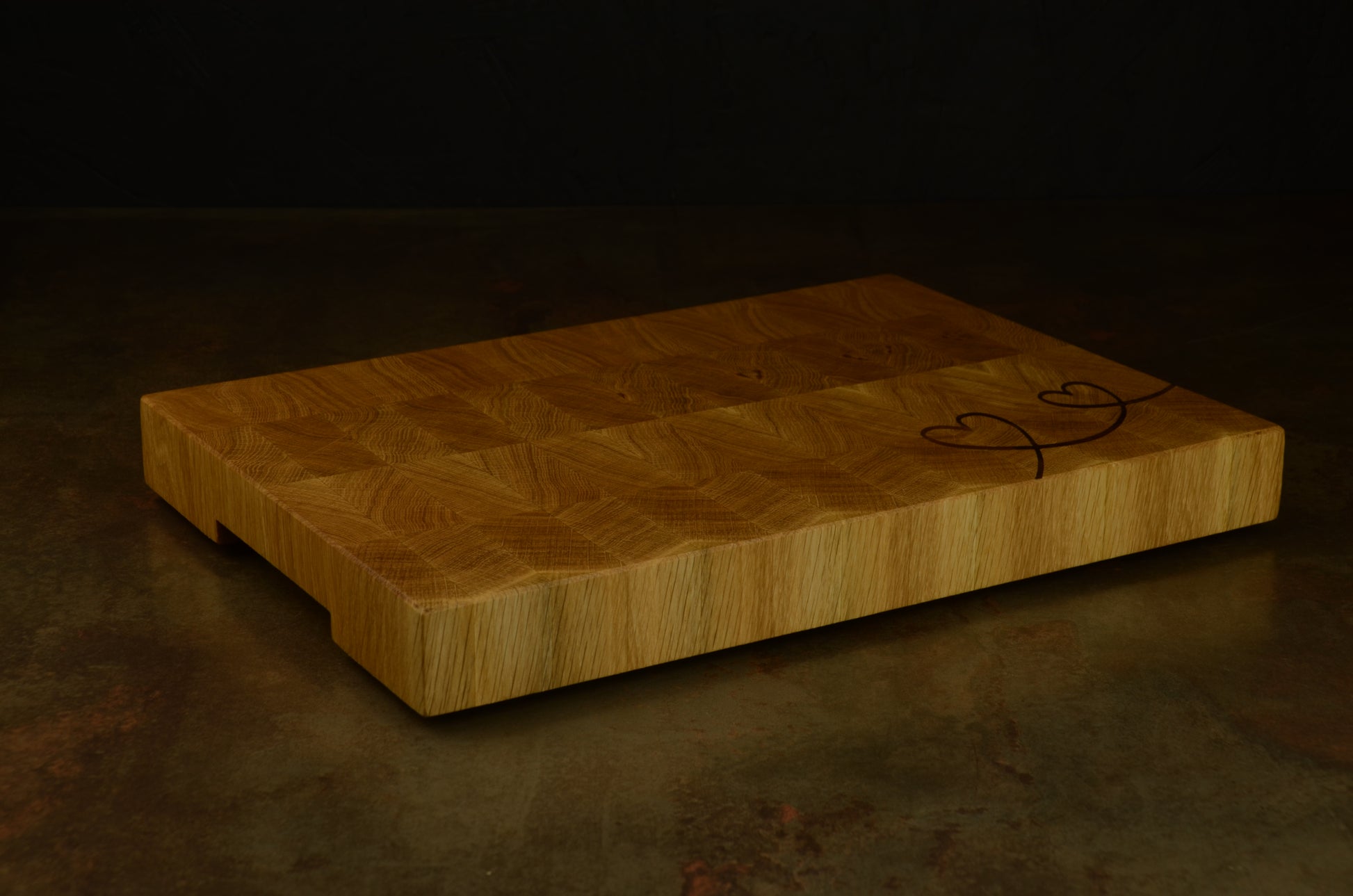 🪵 Planche en bois de bout avec incrustation de cœurs – Édition artisanale