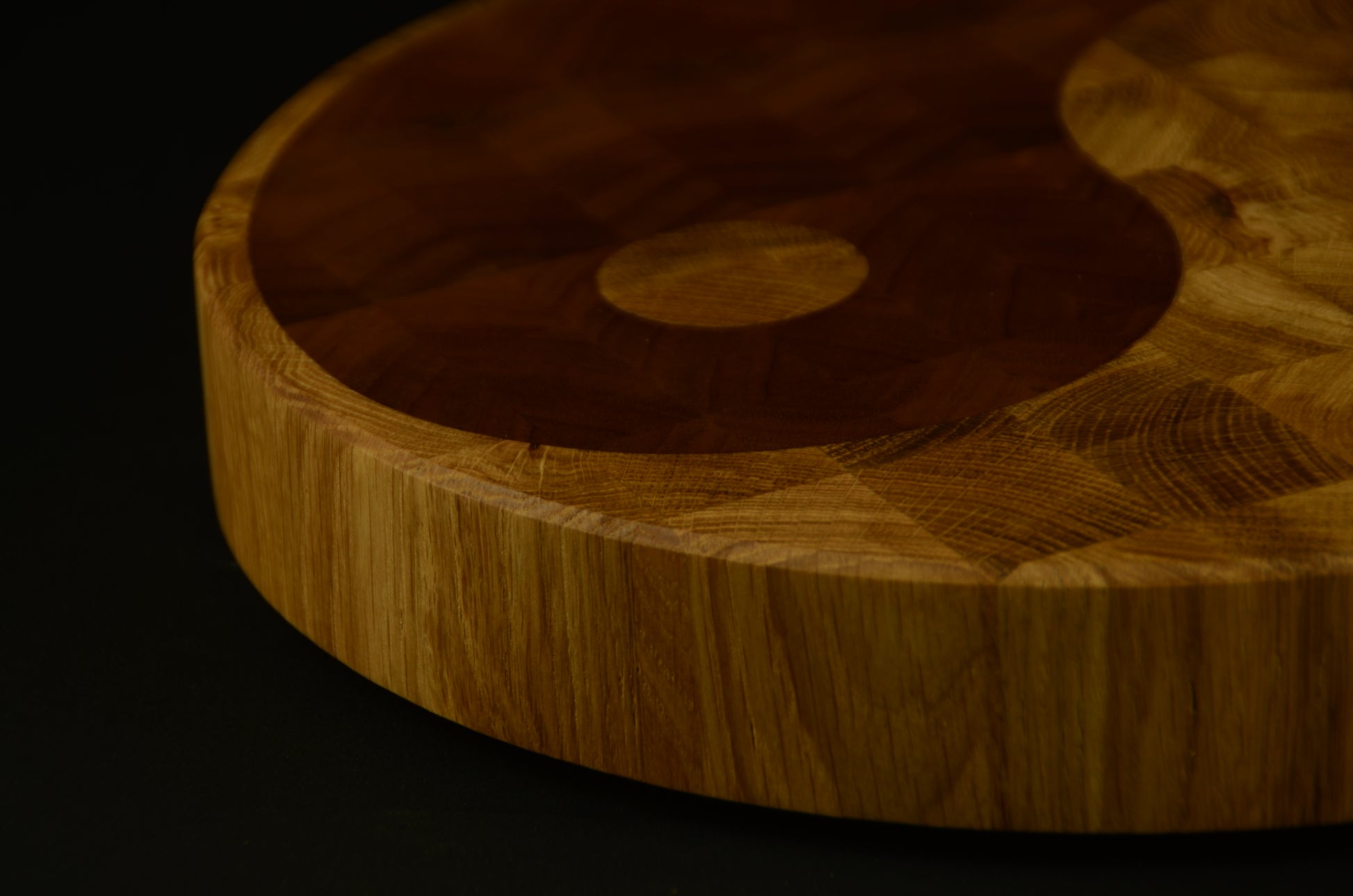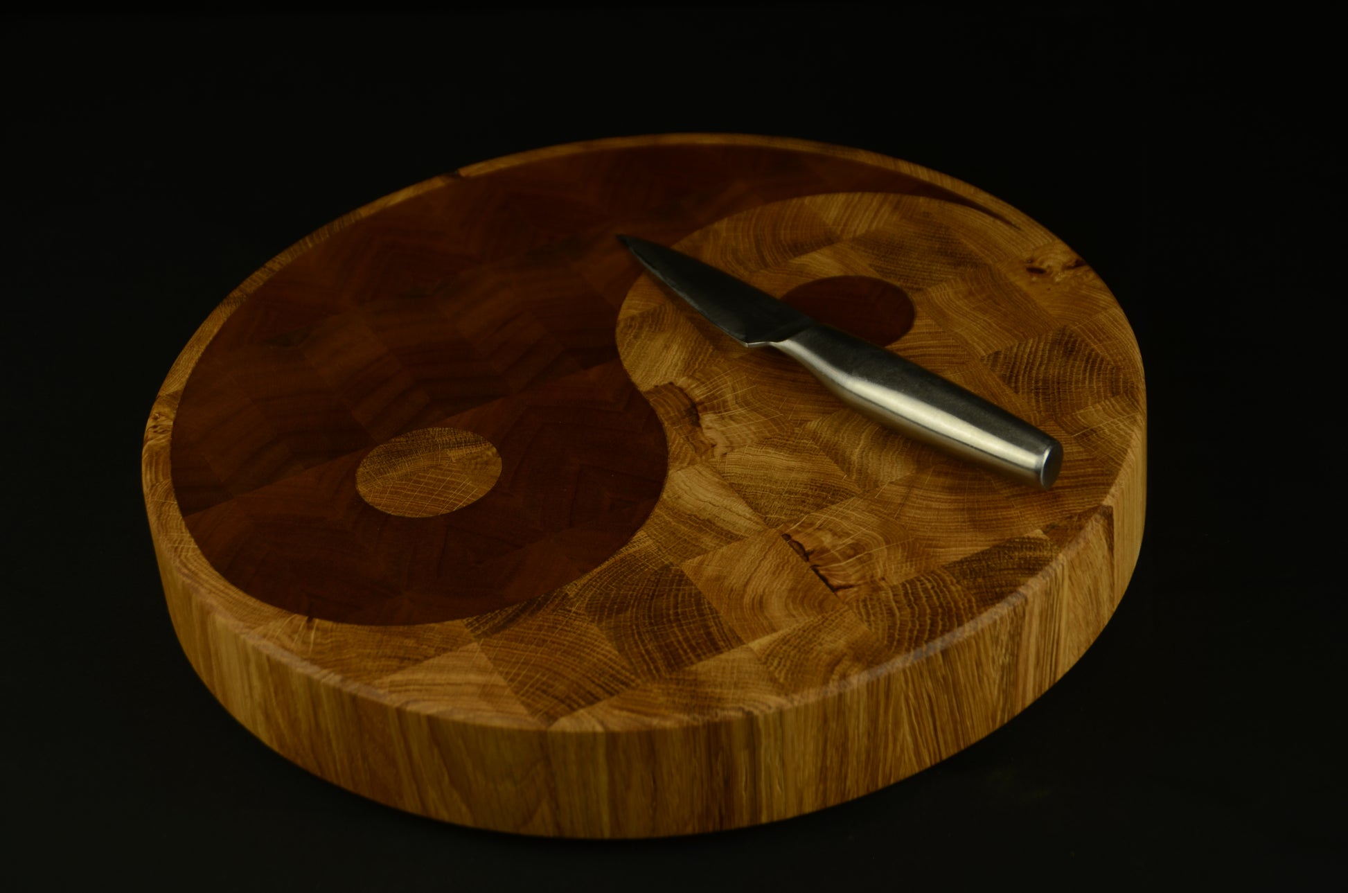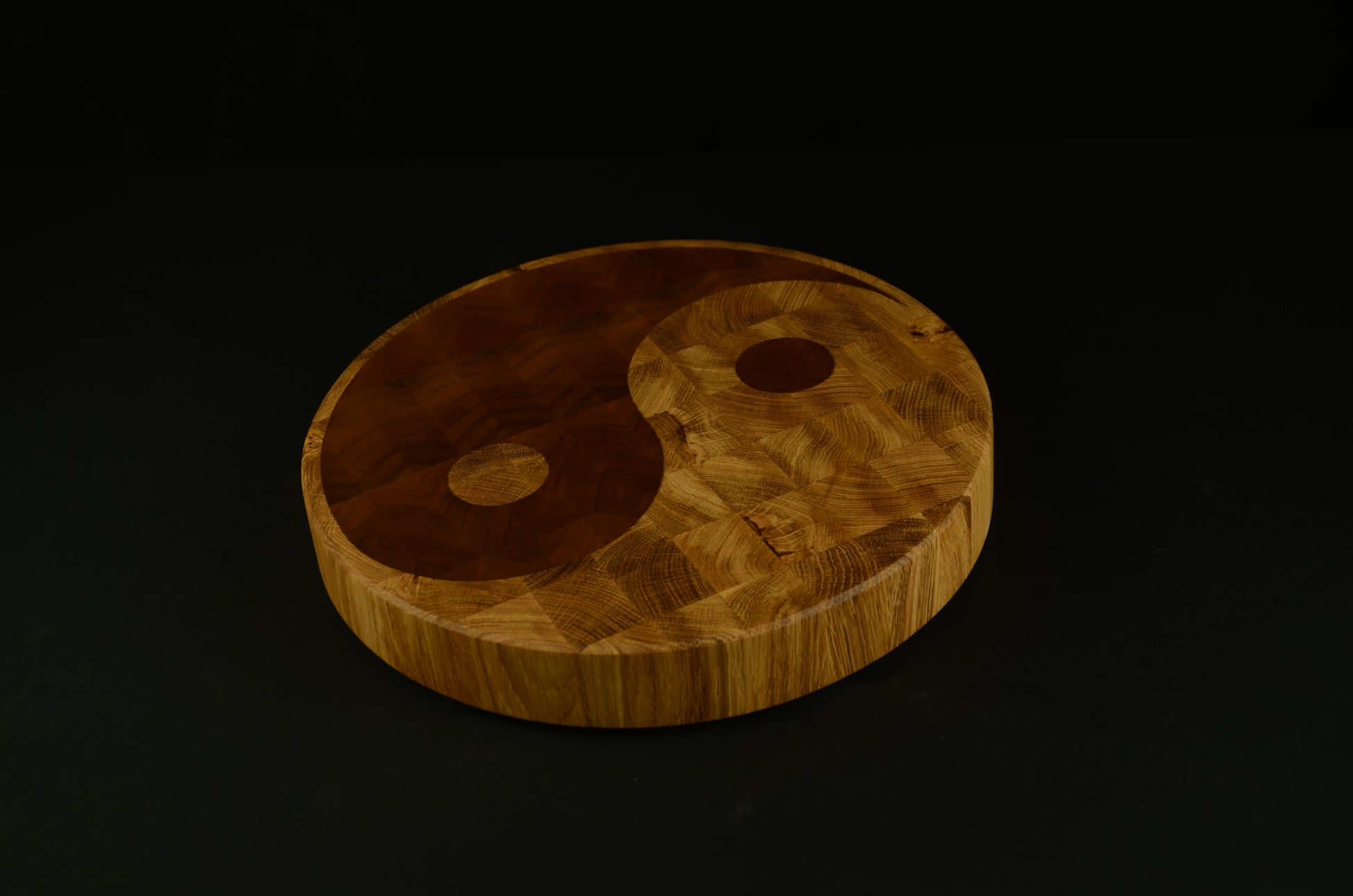 Yin & Yang - Planche à découper ronde – Billot Rond en Bois de bout chêne et noyer