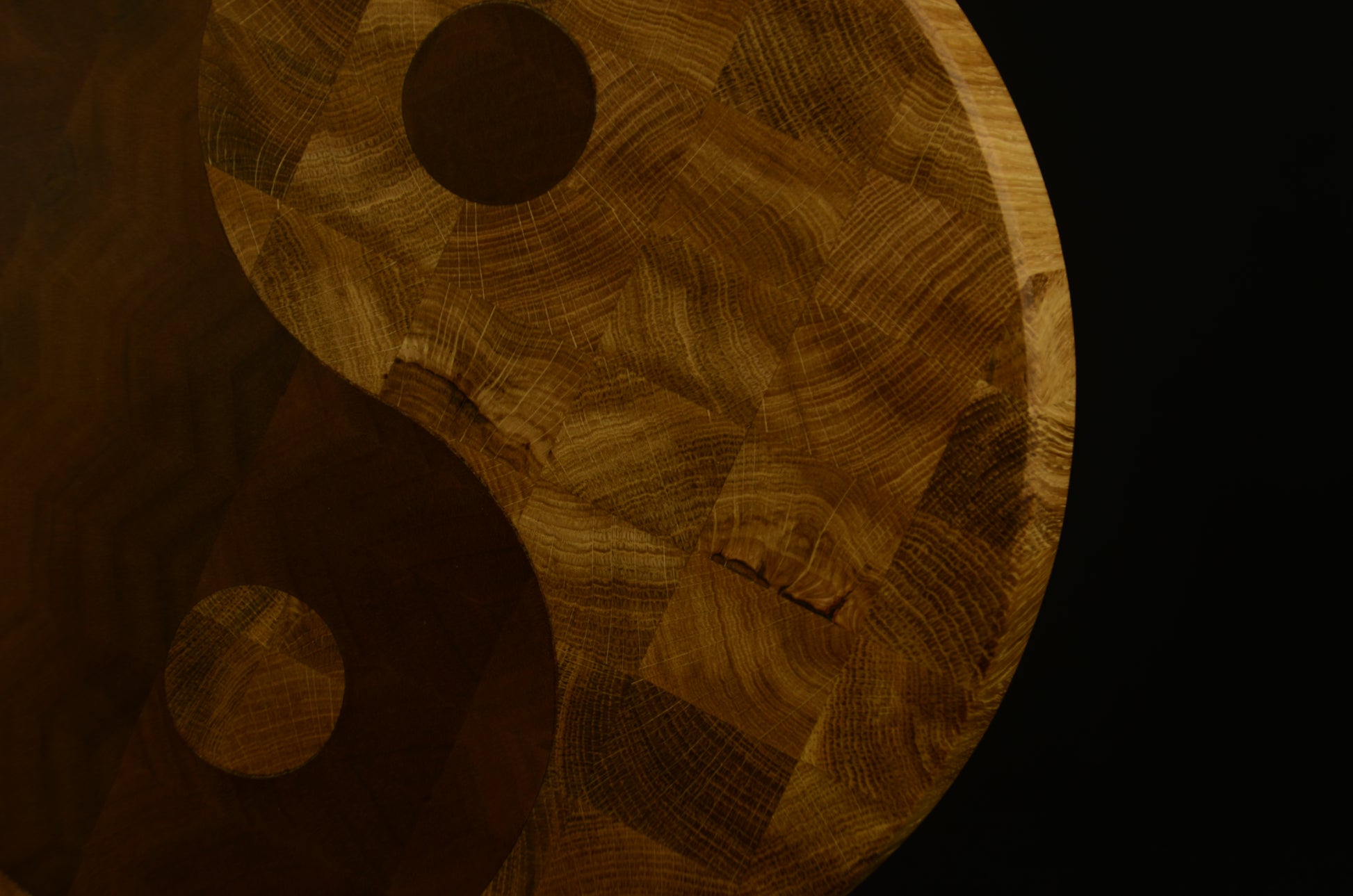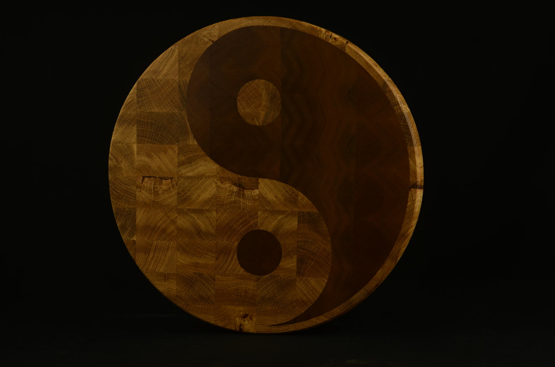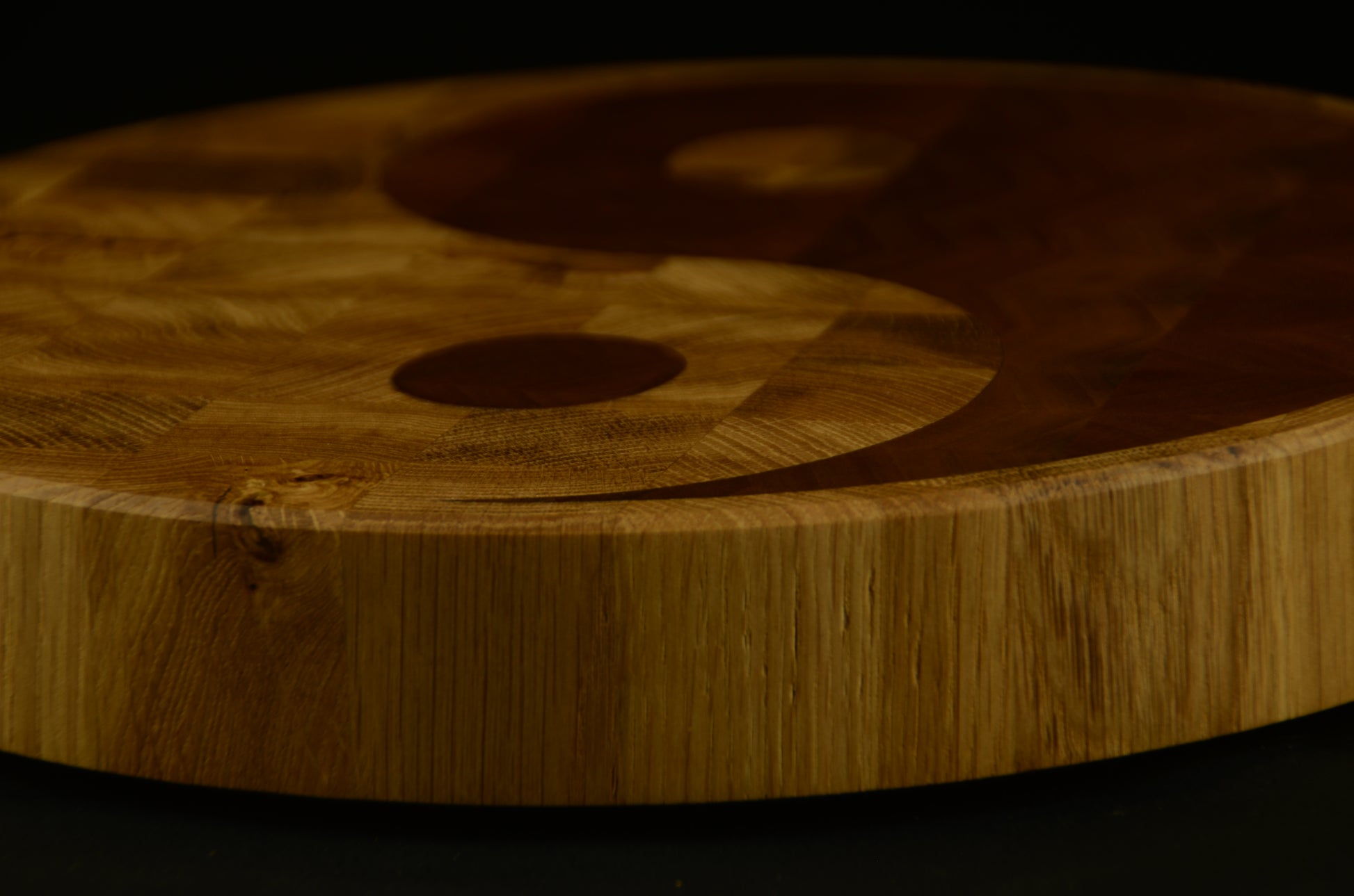 Yin & Yang - Planche à découper ronde – Billot Rond en Bois de bout chêne et noyer